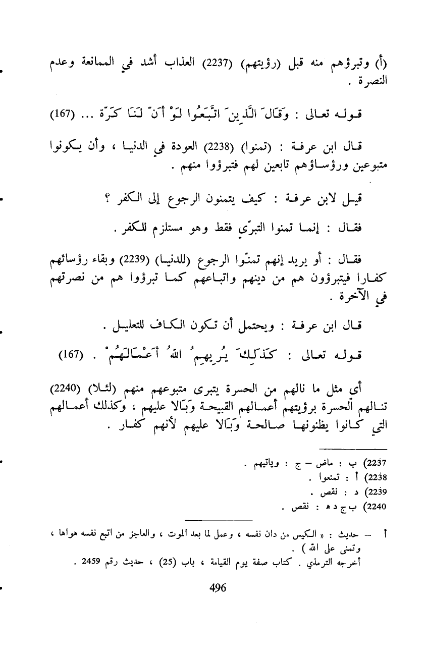 فقال: أو يريد إنهم تمنّوا الرجوع (للدنيا) وبقاء رؤسائهم كفارا فيتبرؤون هم من دينهم واتباعهم كما تبرؤوا هم من نصرتهم في الآخرة.