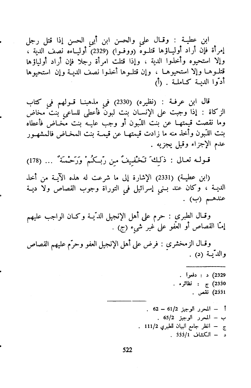 وقال الطبري: حرم على أهل الإنجيل الدّية وكان الواجب عليهم إمّا القصاص أو العفو على غير شيء.