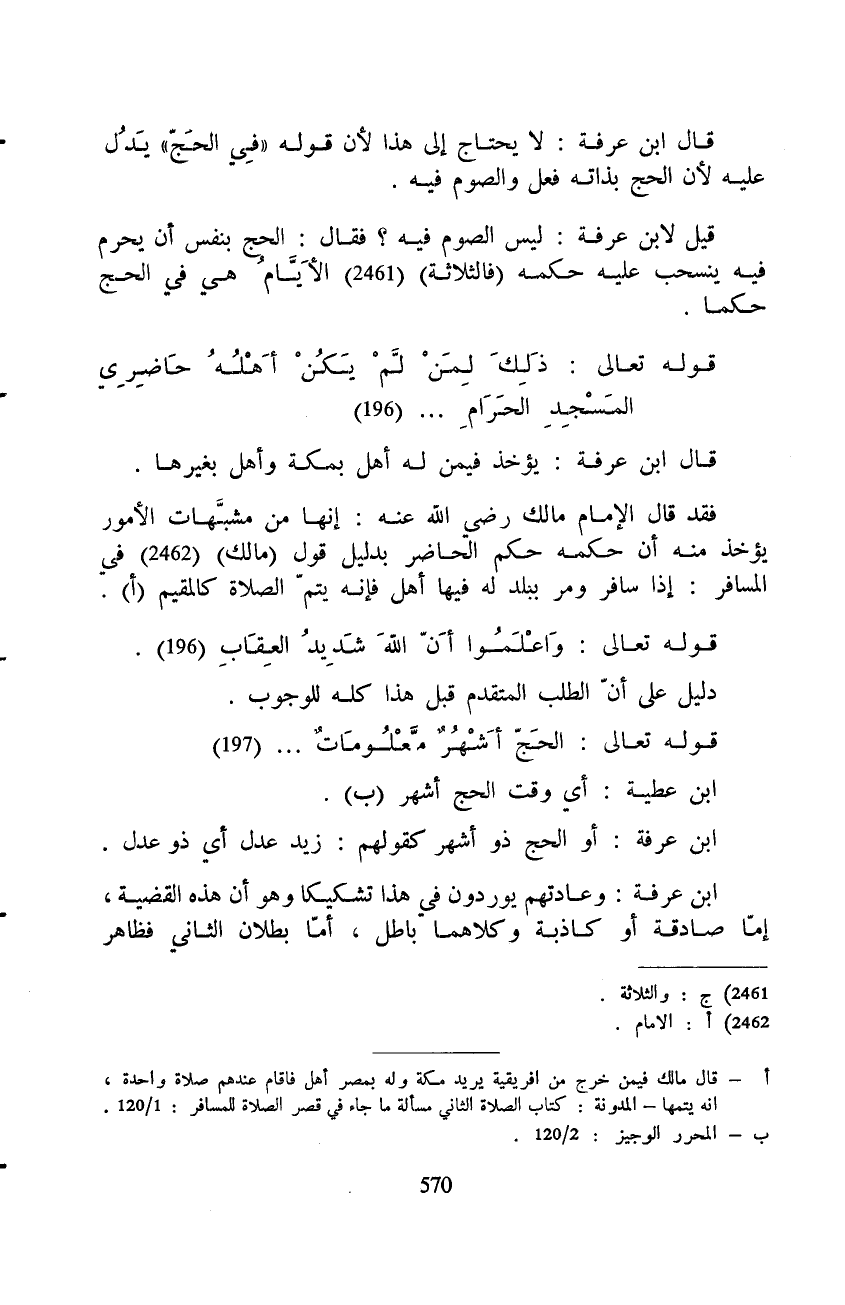 فقد قال الإمام مالك رَضِيَ اللَّهُ عَنْه: إنها من مشبَّهات الأمور يؤخذ منه أن حكمه حكم الحاضر بدليل قول (مالك) في المسافر: إذا سافر ومر ببلد له فيها أهل فإنه يتمّ الصلاة كالمقيم.