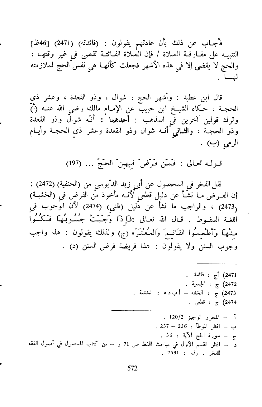 فأجاب عن ذلك بأن عادتهم يقولون: (فائدته) التنبيه على مفارقة الصلاة / فإن الصلاة الفائتة تقضى في غير وقتها، والحج لا يقضى إلا في هذه الأشهر فجعلت كأنها هي نفس الحج لملازمته لها.