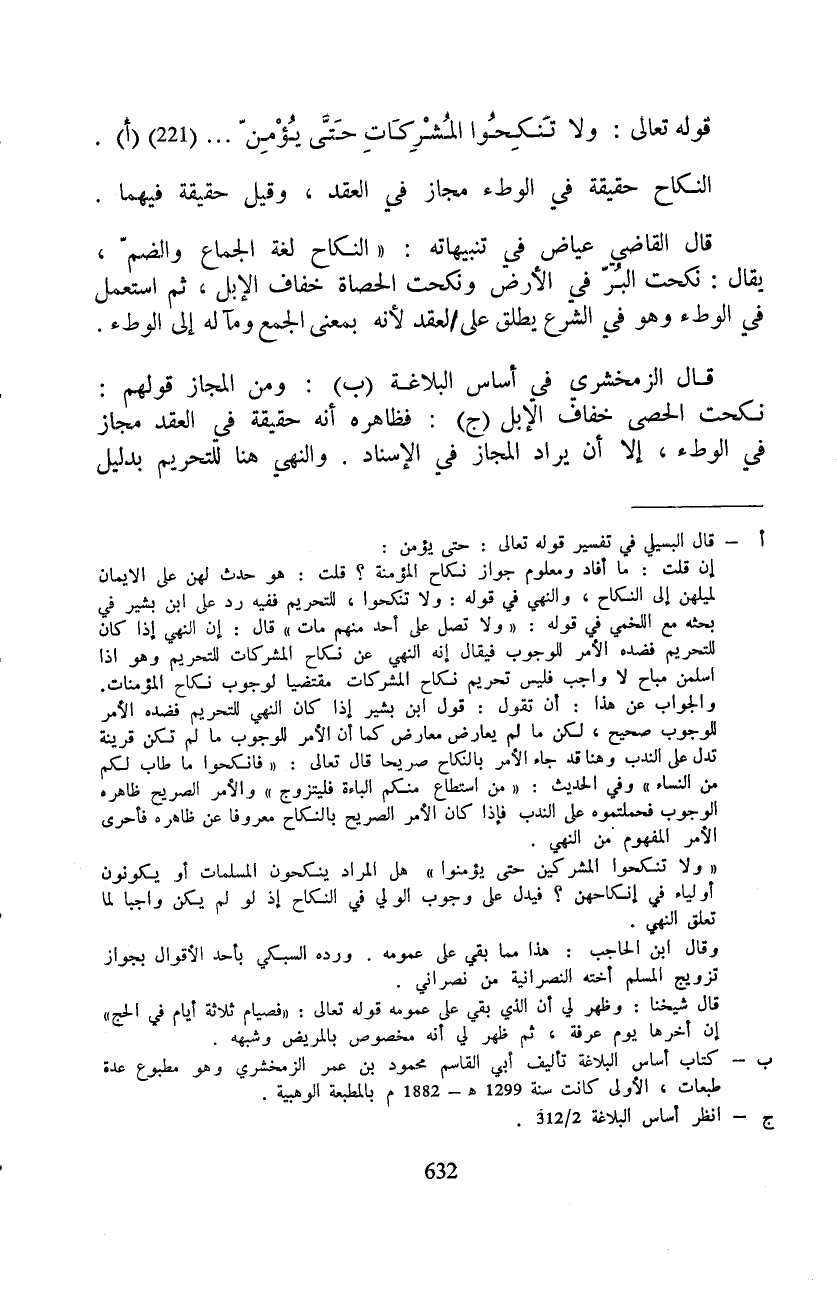 قال الزمخشري في أساس البلاغة: ومن المجاز قولهم: نكحت الحصى خفاف الإبل: فظاهره أنه حقيقة في العقد مجاز في الوطء، إلا أن يراد المجاز في الإسناد. والنهي هنا للتحريم بدليل