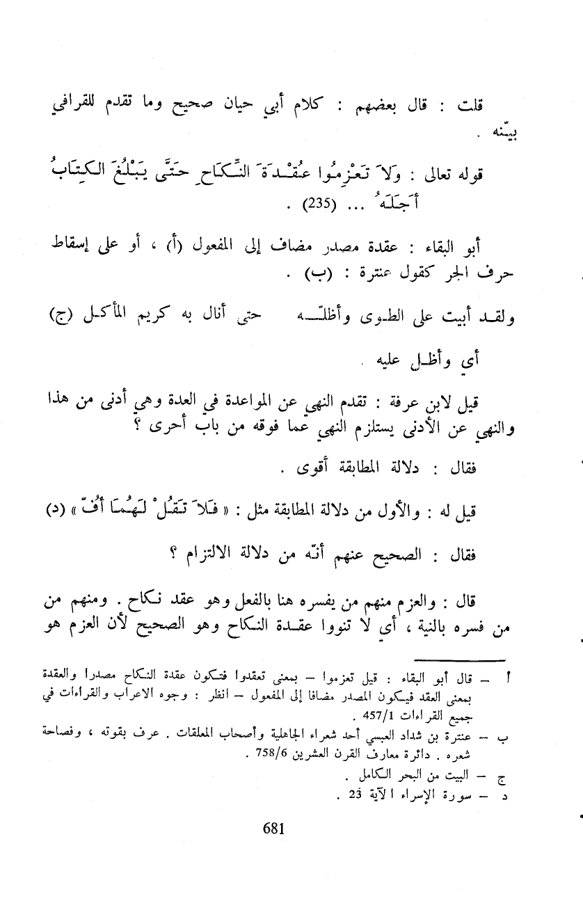 قلت: قال بعضهم: كلام أبي حيان صحيح وما تقدم للقرافي بيّنه.