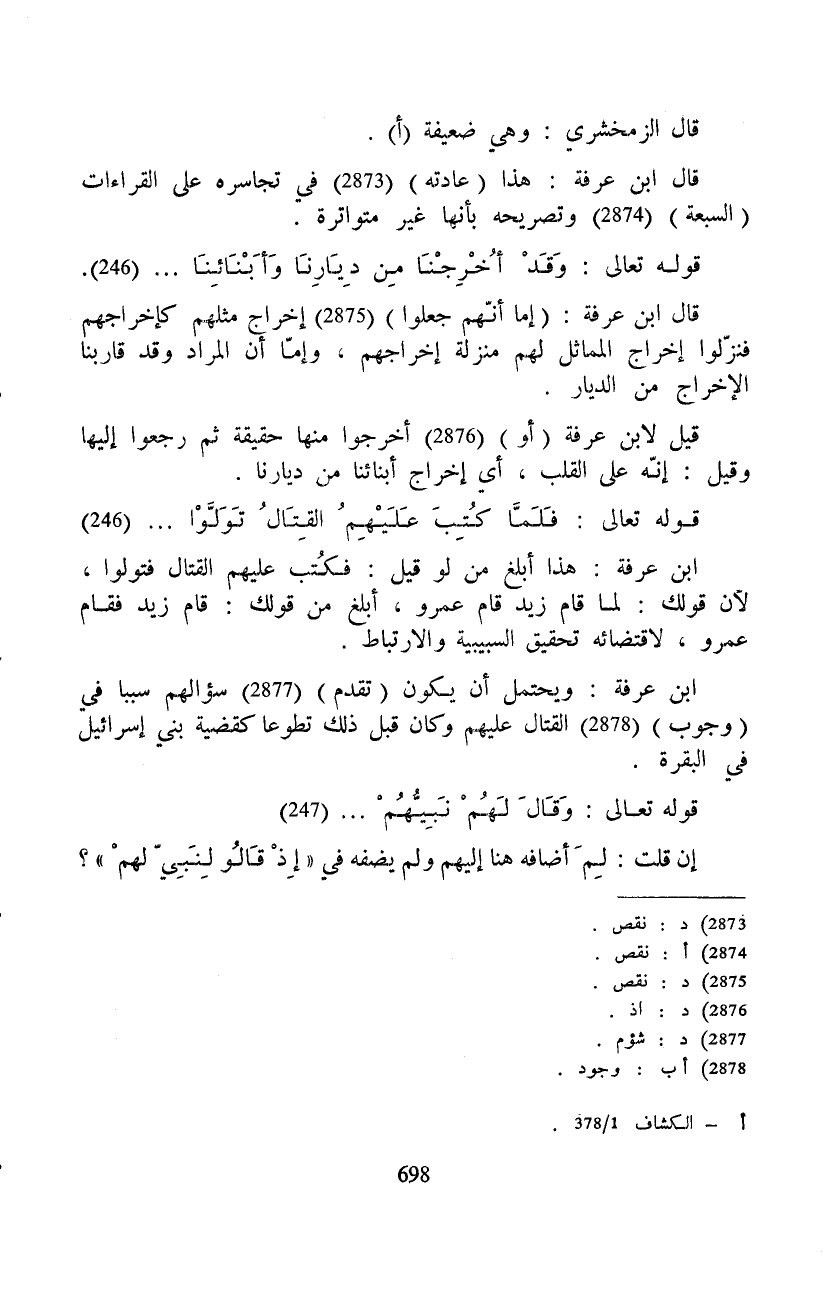 قال ابن عرفة: هذا (عادته) في تجاسره على القراءات (السبعة) وتصريحه بأنها غير متواترة.