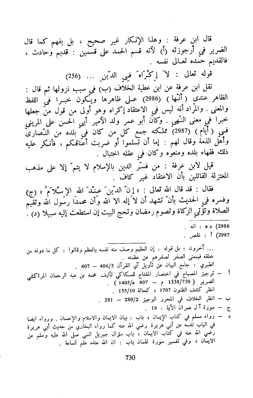قيل لابن عرفة: من فسّر الدين بالإسلام لا يتمّ إلا على مذهب المعتزلة القائلين بأن الاعتقاد غير كاف.