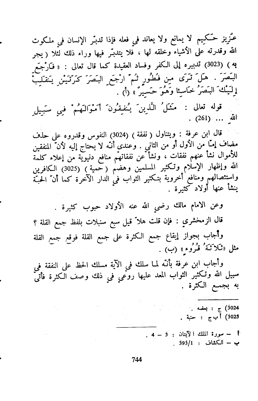 وأجاب ابن عرفة بأنّه لما سلك في الآية مسلك الحظ على النفقة في سبيل الله وتكثير الثواب المعد عليها روعي في ذلك وصف الكثرة فأتى به بجمع الكثرة.