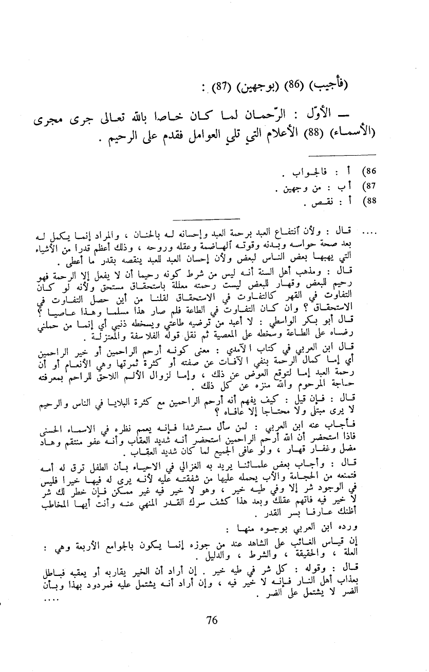 - الأول: الرّحمان لما كان خاصا بالله تعالى جرى مجرى (الأسماء) الأعلام التي تلي العوامل فقدم على الرحيم.
