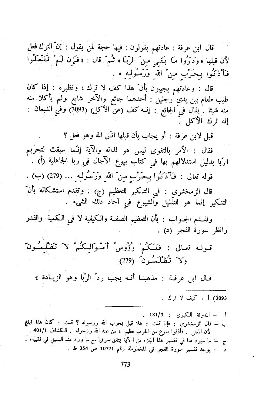 فقال: الأمر بالتقوى ليس هو لذاته والآية إنّما سبقت لتحريم الرّبا بدليل استدلالهم بها في كتاب بيوع الآجال في ربا الجاهلية.