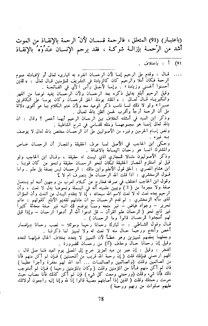 باعتبار) المتعلق، فالرحمة قسمان لأنّ الرحمة بالإنقاذ من الموت أشد من الرّحمة بإزالة شوكة، فقد يرحم الإنسان عَدُوّهُ بالإنقاذ