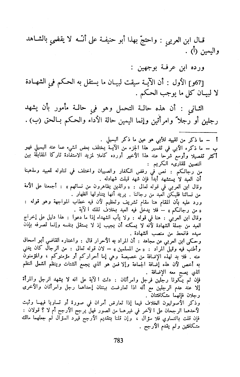 قال ابن العربي: واحتجّ بهذا أبو حنيفة على أنّه لا يقضي بالشاهد واليمين.