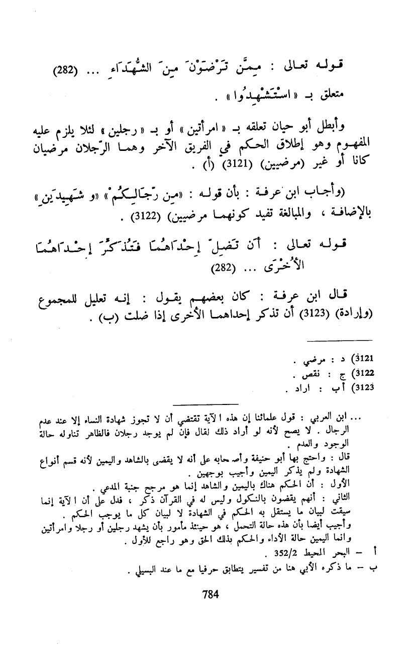 (وأجاب ابن عرفة: بأن قوله: «مِن رِّجَالِكُمْ» «وشَهِيدَينِ» بالإضافة، والمبالغة تفيد كونهما مرضيين) .
