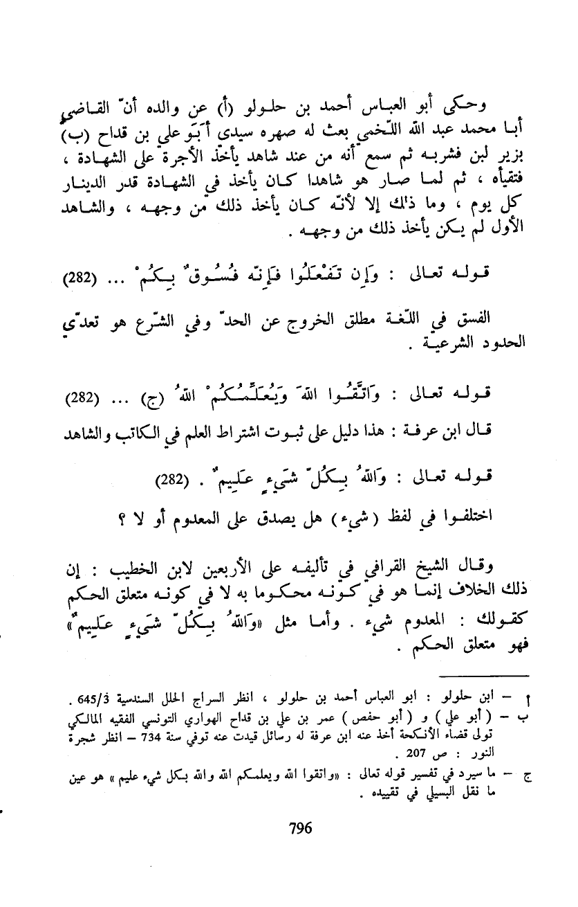 قال ابن عرفة: هذا دليل على ثبوت اشتراط العلم في الكاتب والشاهد.