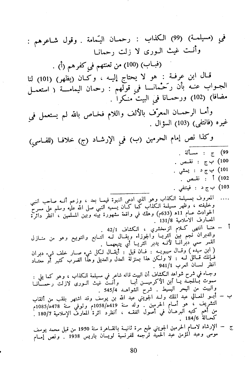 في (مسيلمة) الكذاب: رحمان اليَمامة. وقول شاعرهم: