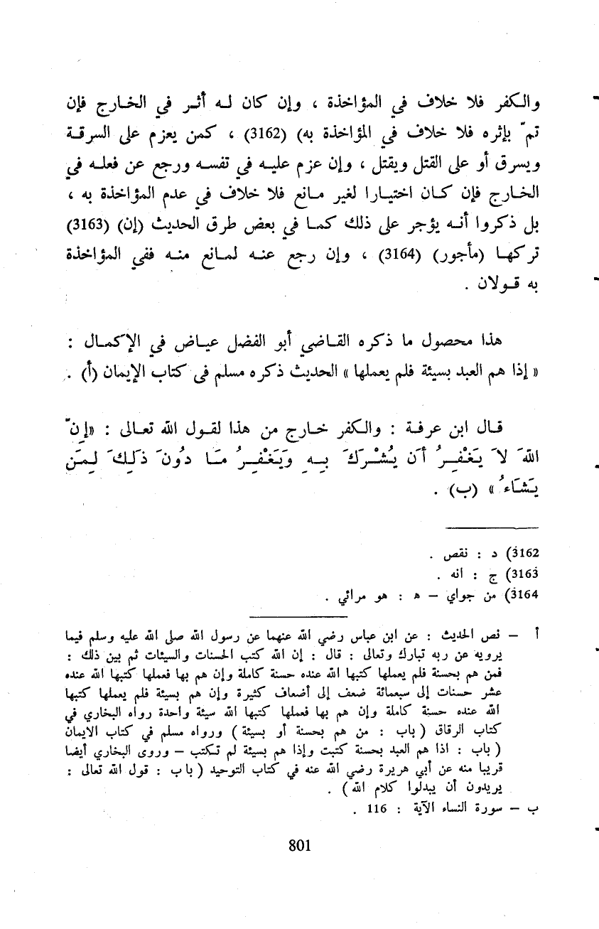 هذا محصول ما ذكره القاضي أبو الفضل عياض في الإكمال: «إذا هم العبد بسيئة فلم يعملها» الحديث ذكره مسلم في كتاب الإيمان.
