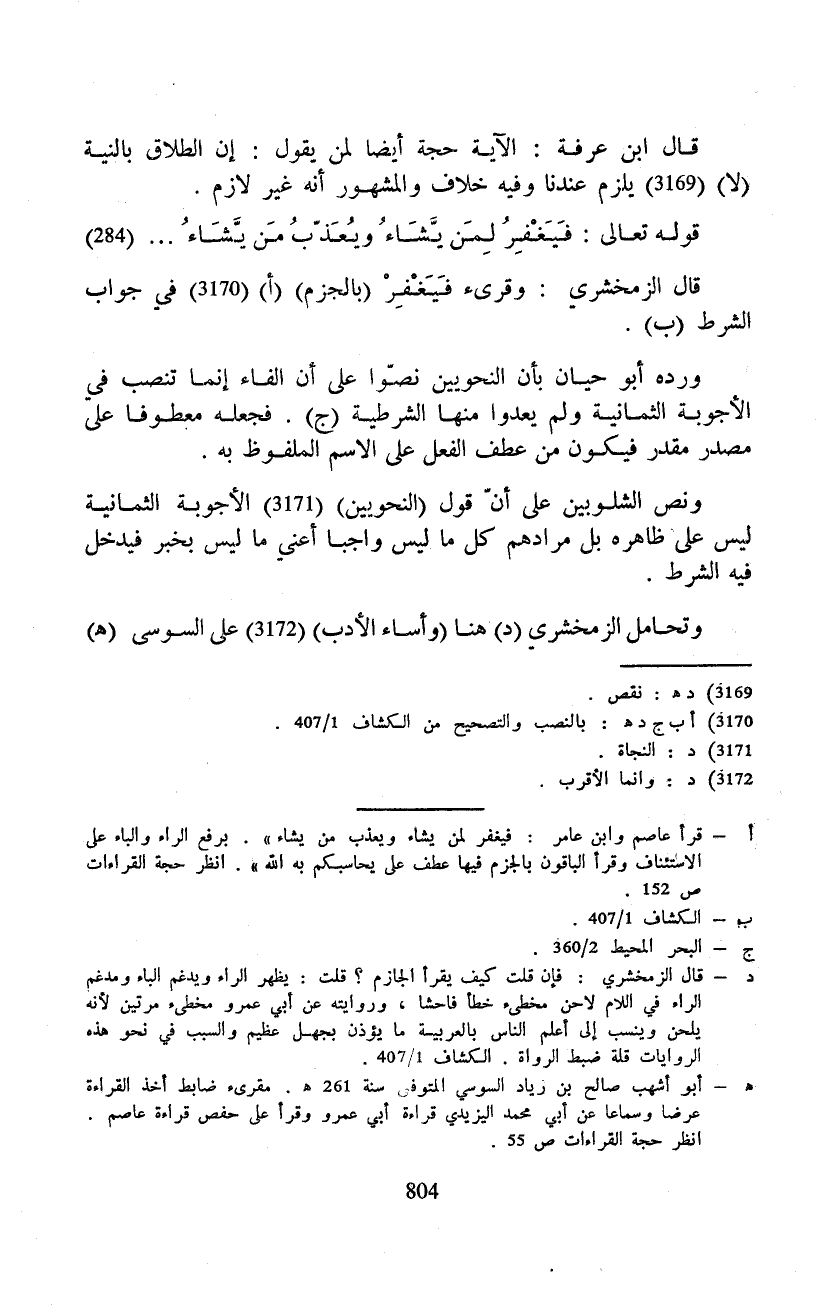 قال الزمخشري: وقرىء فَيَغْفِرْ (بالجزم) في جواب الشرط.