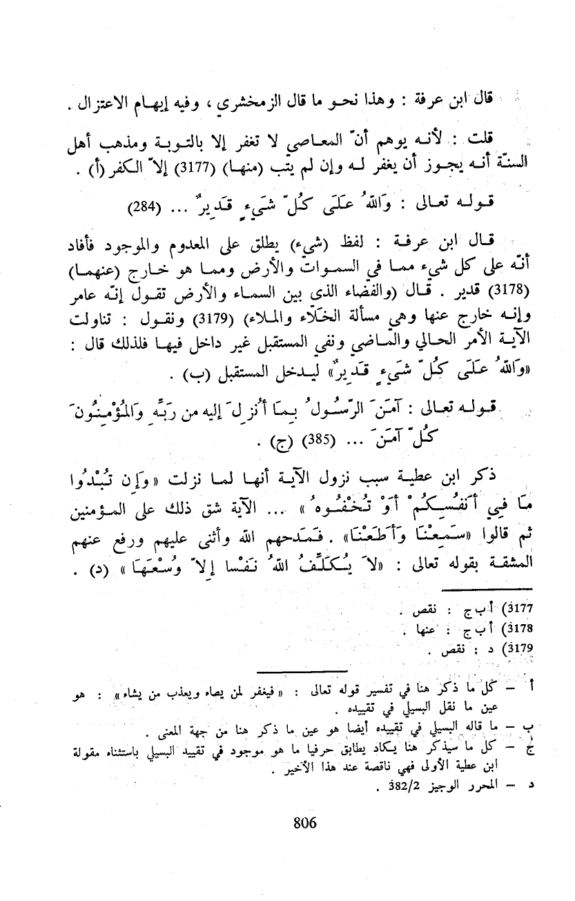 قال ابن عرفة: وهذا نحو ما قال الزمخشري، وفيه إيهام الاعتزال.