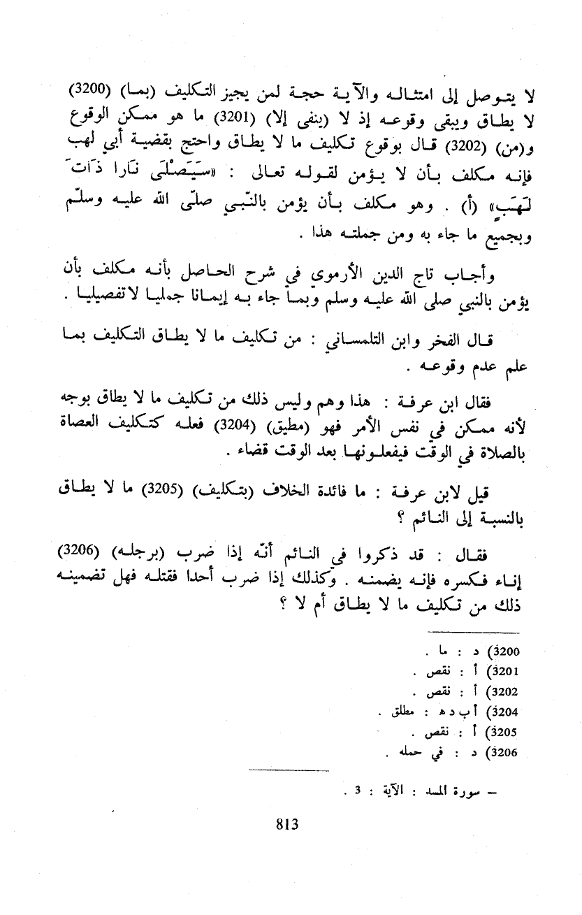 قيل لابن عرفة: ما فائدة الخلاف (بتكليف) ما لا يطاق بالنسبة إلى النائم؟