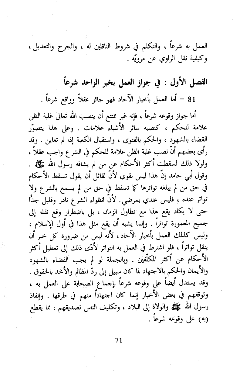 الفصل الأول: في جواز العمل بخبر الواحد شرعا
