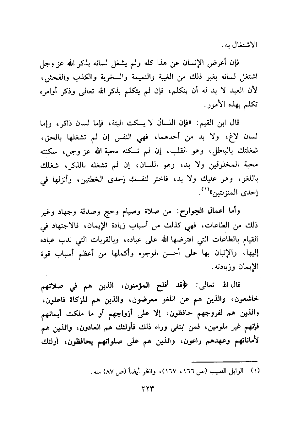 1 الوابل الصيب (ص 166، 167) ، وانظر أيضاً (ص 87) منه.