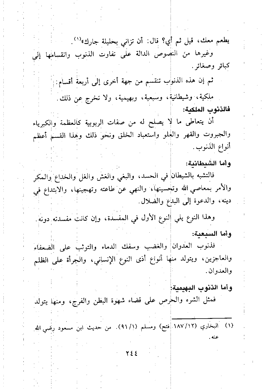 ثم إن هذه الذنوب تنقسم من جهة أخرى إلى أربعة أقسام: