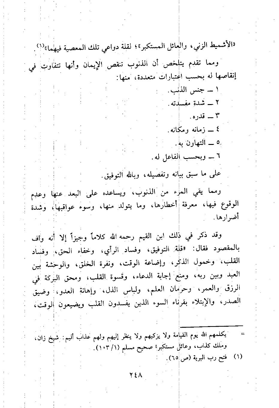 ومما تقدم يتلخص أن الذنوب تنقص الإيمان وأنها تتفاوت في إنقاصها له بحسب اعتبارات متعددة، منها:
