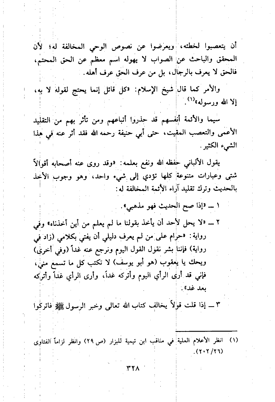سيما والأئمة أنفسهم قد حذروا أتباعهم ومن تأثر بهم من التقليد الأعمى والتعصب المقيت، حتى أبي حنيفة رحمه الله فقد أثر عنه في هذا الشيء الكثير.