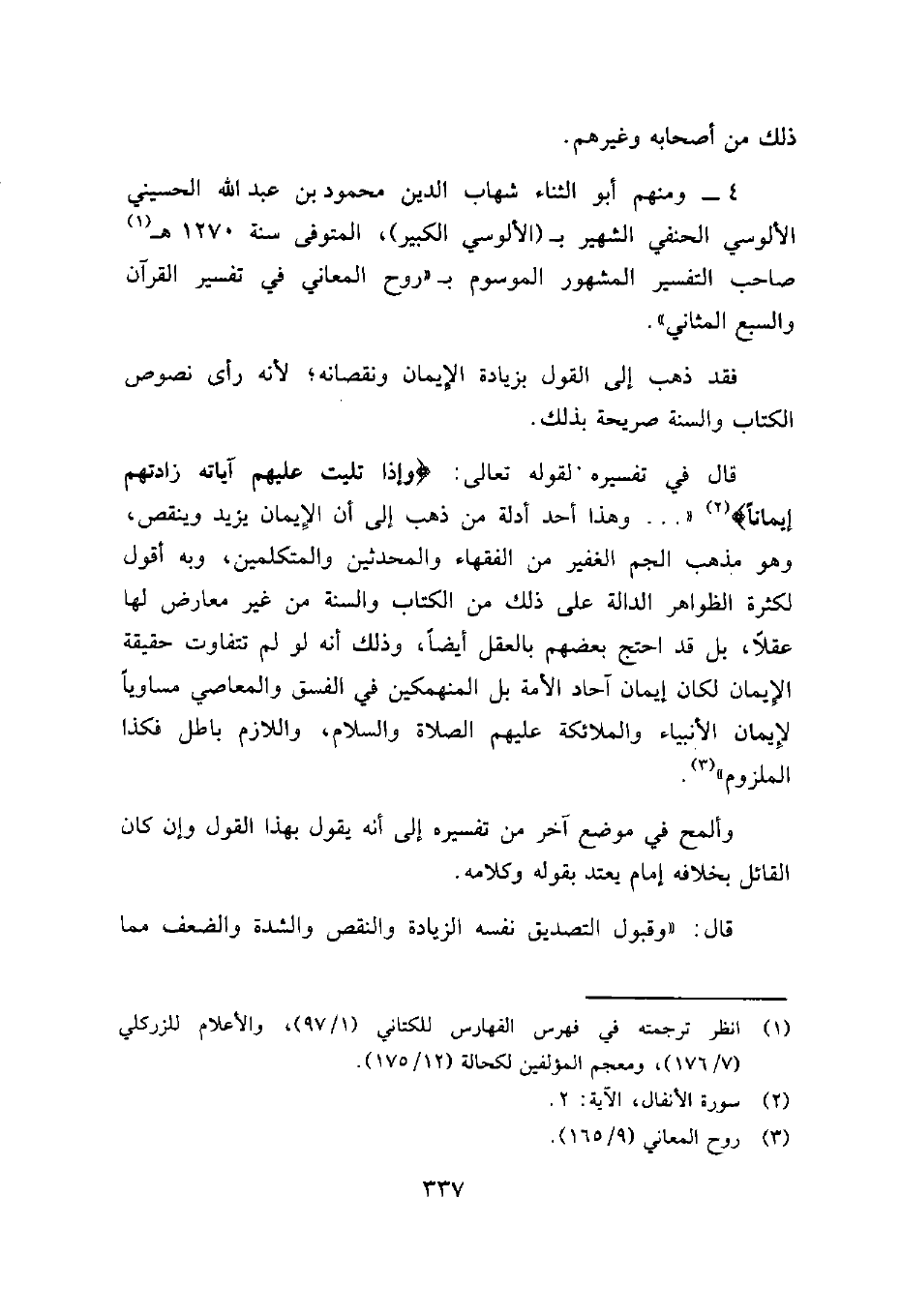 4- ومنهم أبو الثناء شهاب الدين محمود بن عبد الله الحسيني الألوسي الحنفي الشهير بـ (الألوسي الكبير) ، المتوفى سنة 1270 هـ 1 صاحب التفسير المشهور الموسوم بـ "روح المعاني في تفسير القران والسبع المثاني ".