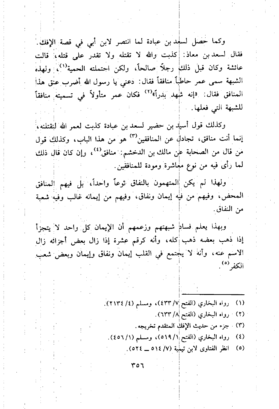 ولهذا لم يكن المتهمون بالنفاق نوعاً واحداً، بل فيهم المنافق المحض، وفيهم من فيه إيمان ونفاق، وفيهم من إيمانه غالب وفيه شعبة من النفاق.