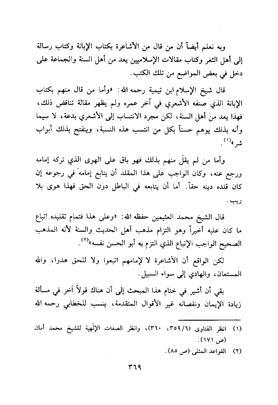 1 انظر الفتاوى (6/ 359، 360) ، وانظر الصفات الإلهية للشيخ محمد أمان (ص 171) .