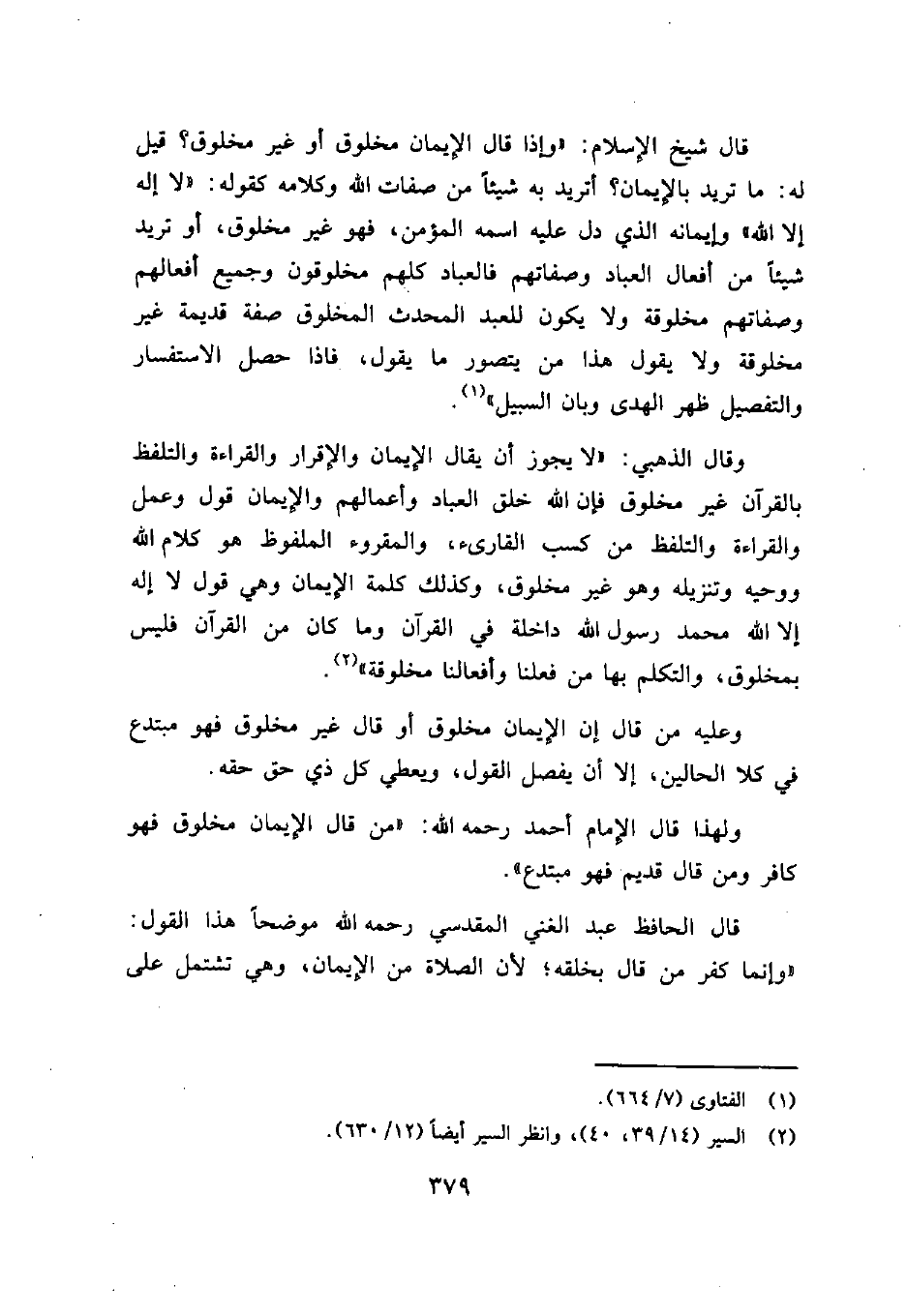 وعليه عن قال إن الإيمان مخلوق أر قال غير مخلوق فهو مبتدع في كلا الحالين، إلا أن يفصل القول، ويعطي كل ذي حق حقه.