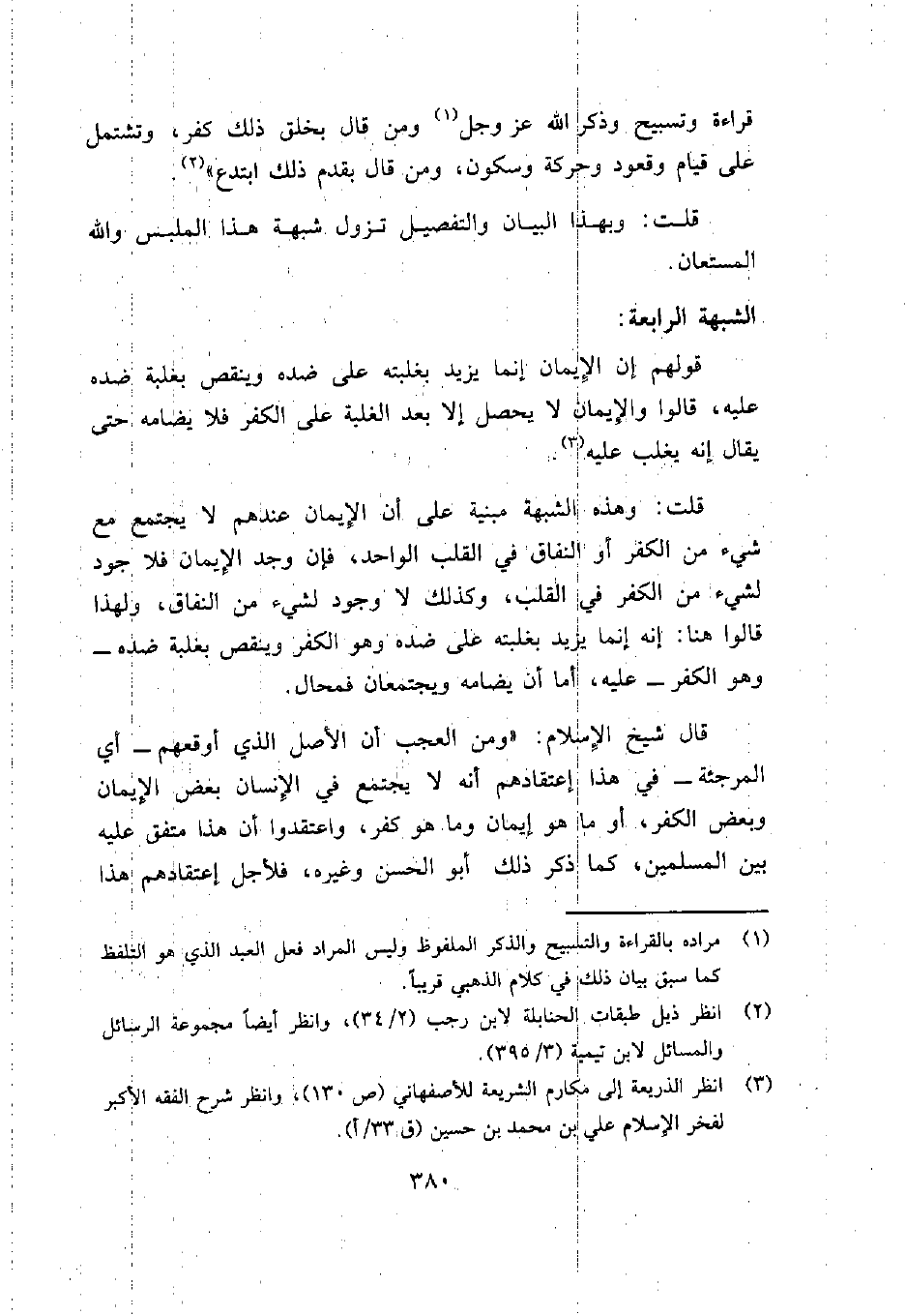 3 انظر الذريعة إلى مكارم الشريعة للأصفهاني (ص 130) ، وانظر شرح الفقه الأكبر لفخر الإسلام علي بن محمد بن حسين (ق 33/أ) .