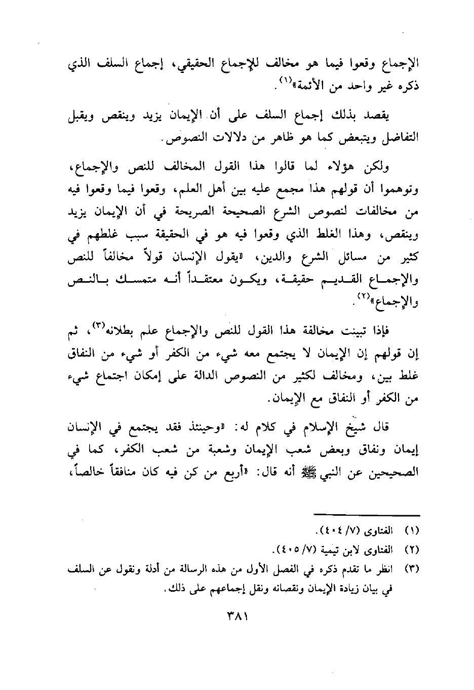 3 انظر ما تقدم ذكره في الفصل الأول من هذه الرسالة من أدلة ونقول عن السلف في بيان زيادة الإيمان ونقصانه ونقل إجماعهم على ذلك.