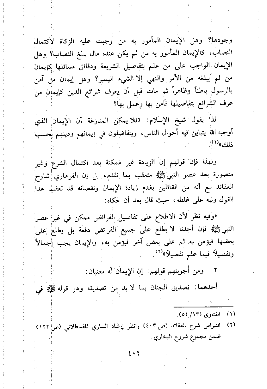 2 النبراس شرح العقائد (ص 403) وانظر إرشاد الساري للقسطلاني (ص 122) ضمن مجموع شروح البخاري.