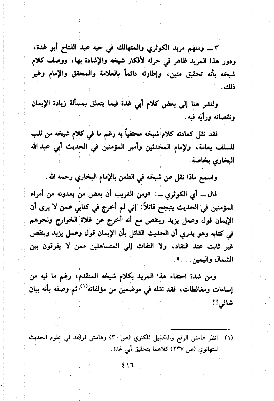 ولنشر هنا إلى بعض كلام أبي غدة فيما يتعلق بمسألة زيادة الإيمان ونقصانه ورأيه فيه.