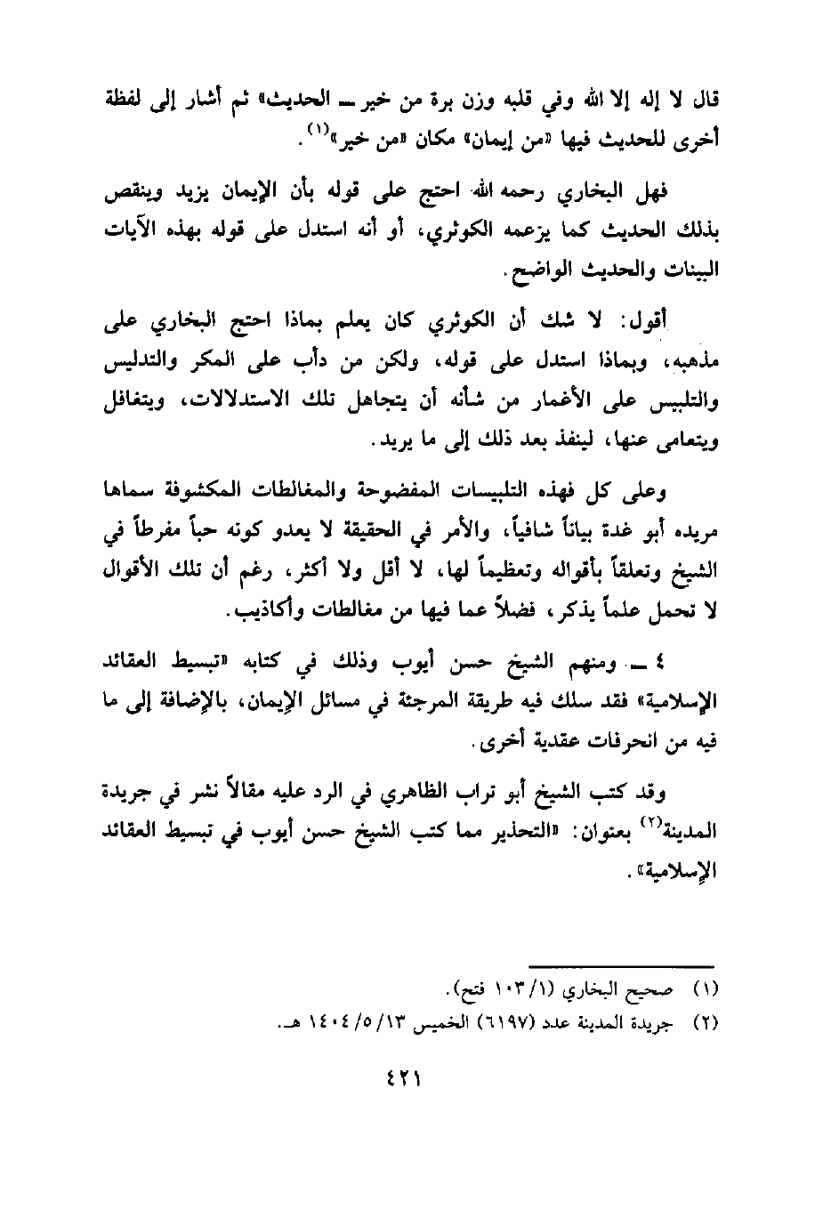 فهل البخاري رحمه الله احتج على قوله بأن الإيمان يزيد وينقص بذلك الحديث كما يزعمه الكوثري، أو أنه استدل على قوله بهذه الآيات البينات والحديث الواضح.
