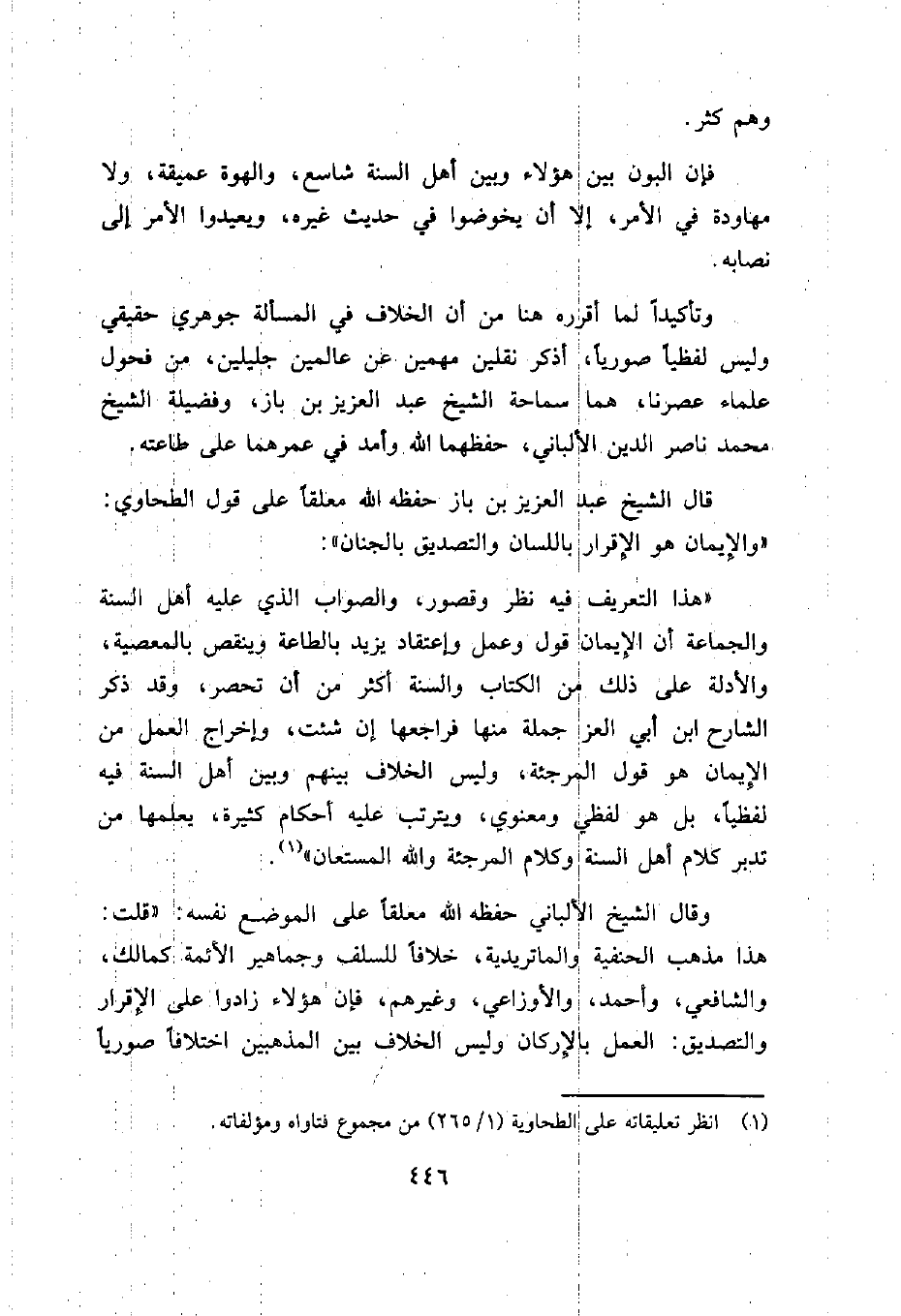 1 انظر تعليقاته على الطحاوية (1/ 265) من مجموع فتاواه ومؤلفاته.