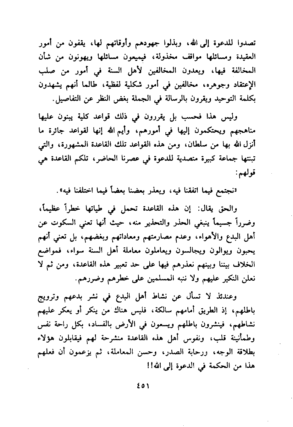 وليس هذا فحسب بل يقررون في ذلك قواعد كلية يبنون عليها مناهجهم ويحتكمون إليها في أمورهم، وأيم الله إنها لقواعد جائرة ما أنزل الله بها من سلطان، ومن هذه القواعد تلك القاعدة المشهورة، والتي تبنتها جماعة كبيرة متصدية للدعوة في عصرنا الحاضر، تلكم القاعدة هي قولهم:
