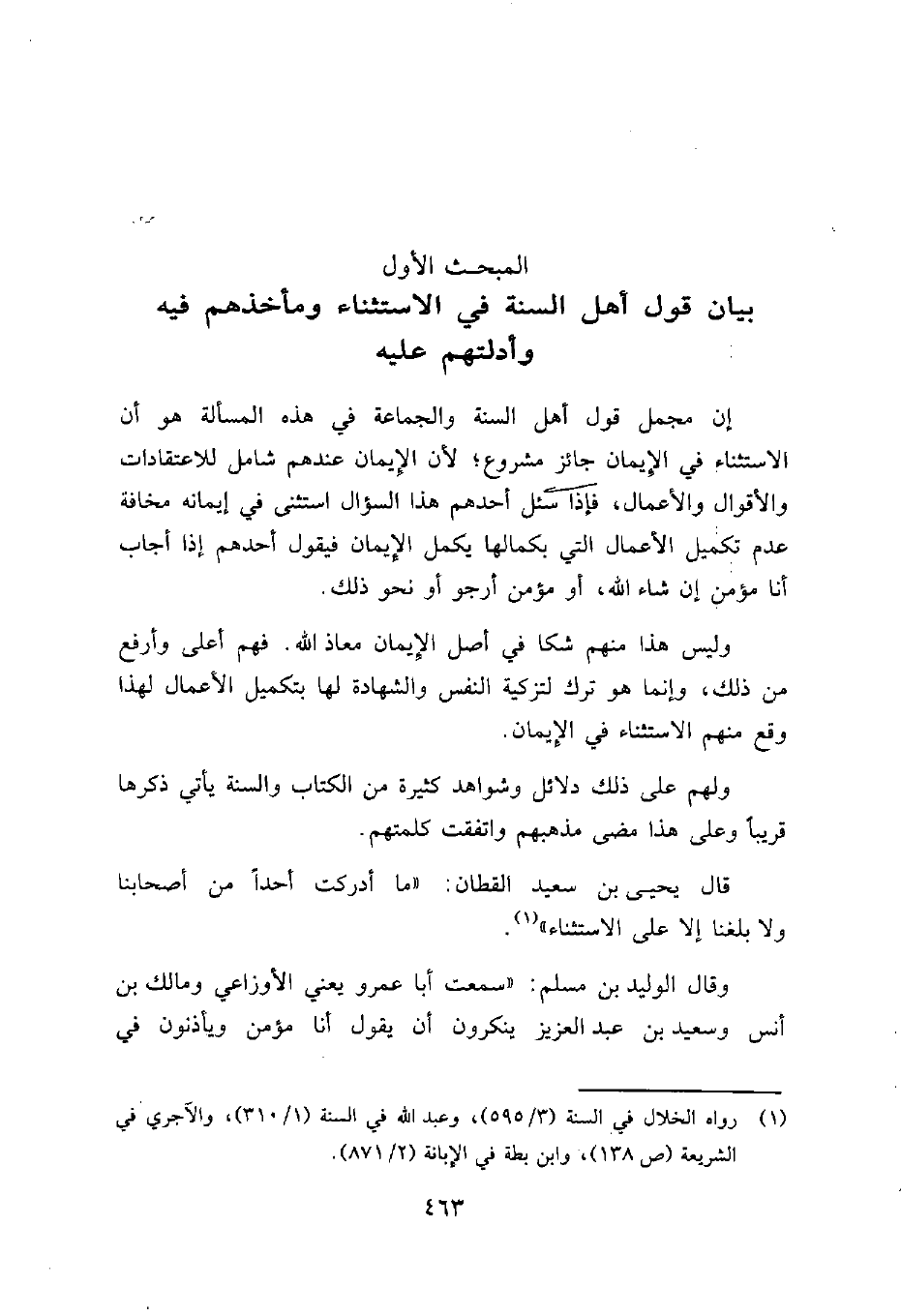 المبحث الأول: بيان قول أهل السنة في الاستثناء ومأخذهم فيه وأدلتهم عليه