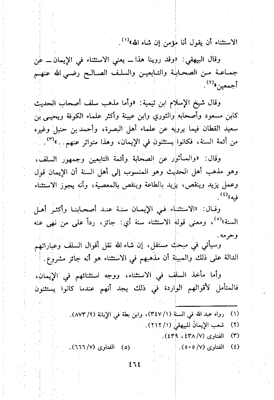 وقال البيهقي: "وقد روينا هذا - يعني الاستثناء في الإيمان- عن جماعة من الصحابة والتابعين والسلف الصالح رضي الله عنهم أجمعين"2.