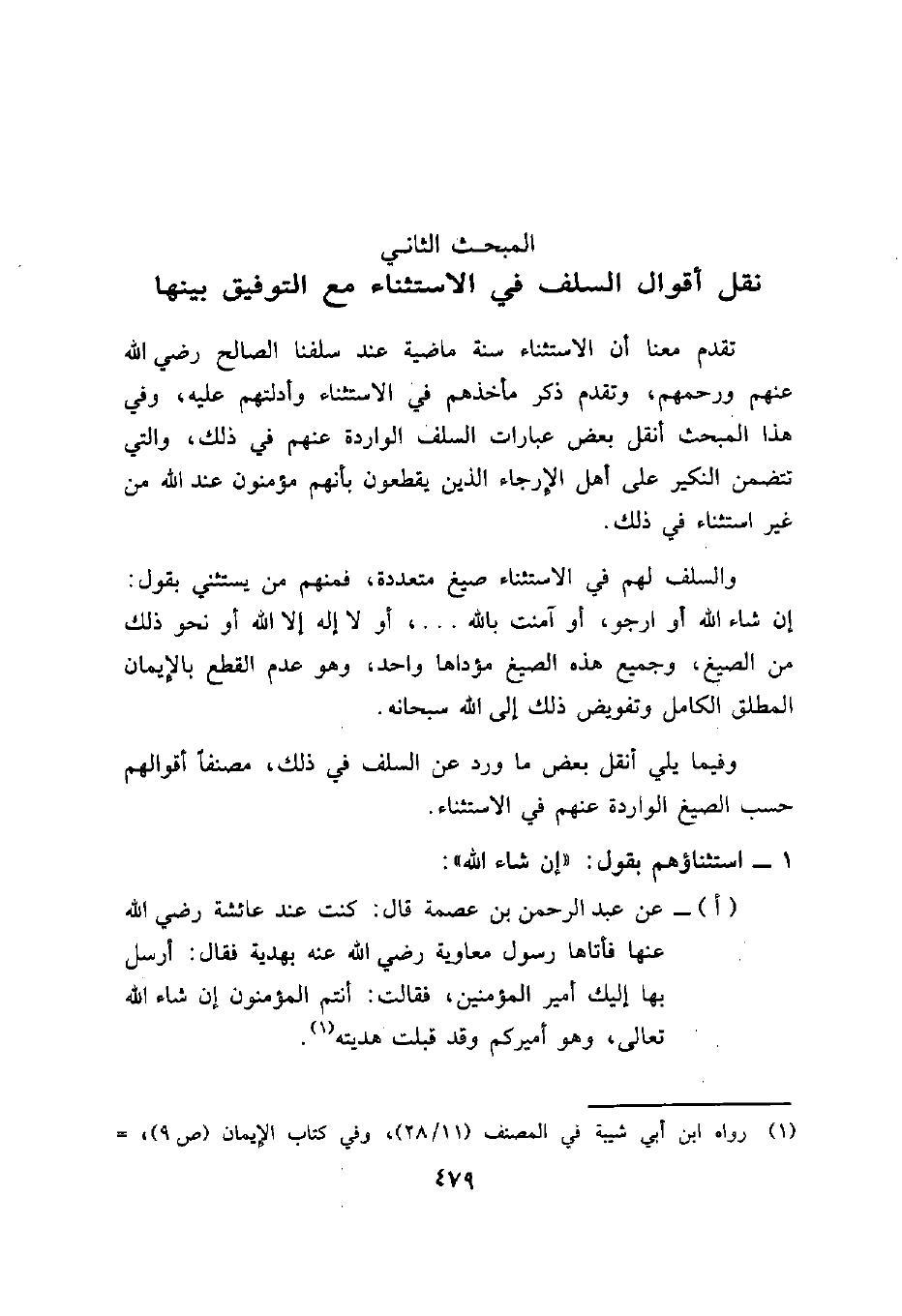 المبحث الثاني: نقل أقوال السلف في الاستثناء مع التوفيق بينها