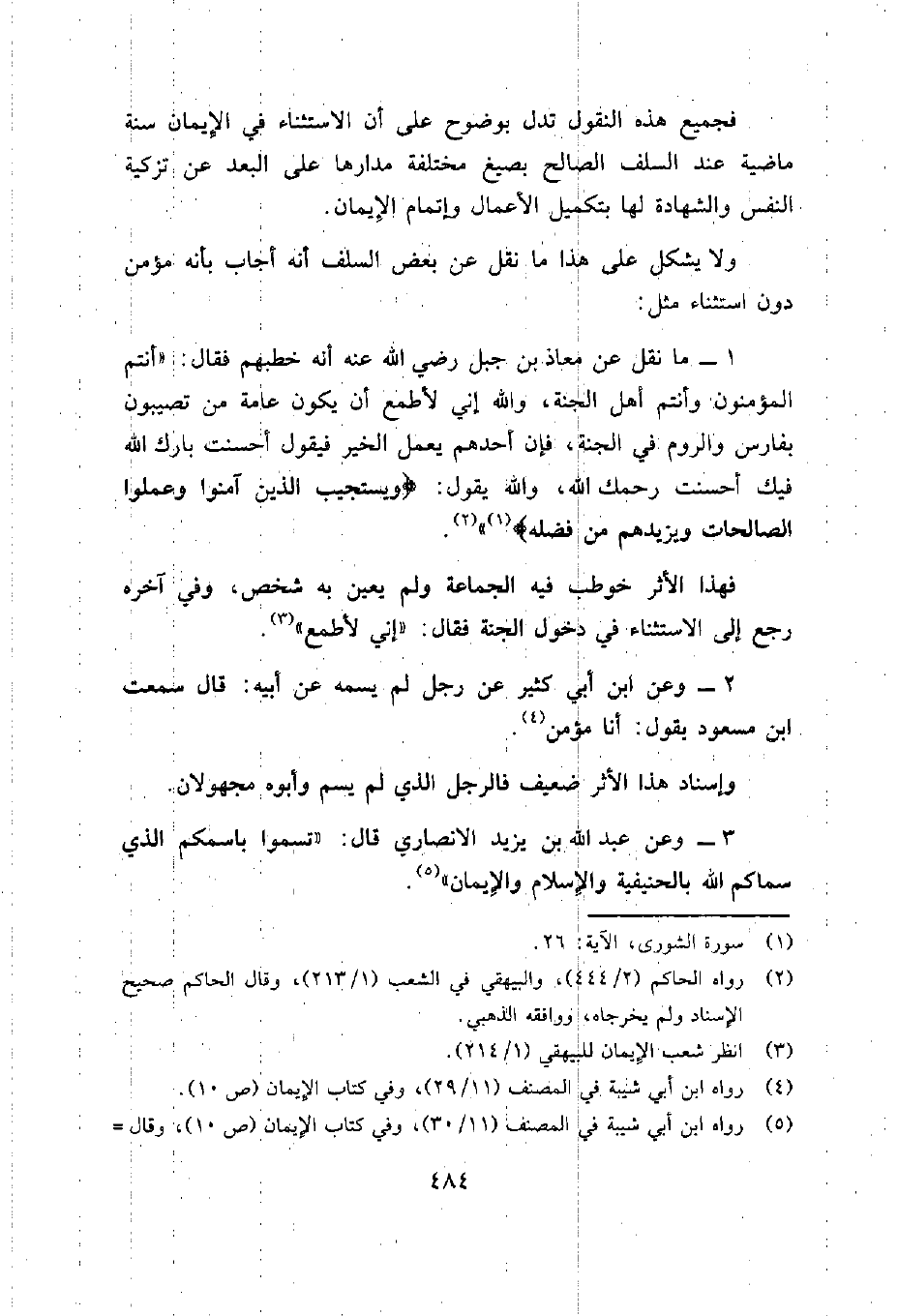 فجميع هذه النقول تدل بوضوح على أن الاستثناء في الإيمان سنة ماضية عند السلف الصالح بصيغ مختلفة مدارها على البعد عمت تزكية النفس والشهادة لها بتكميل الأعمال وإتمام الإيمان.