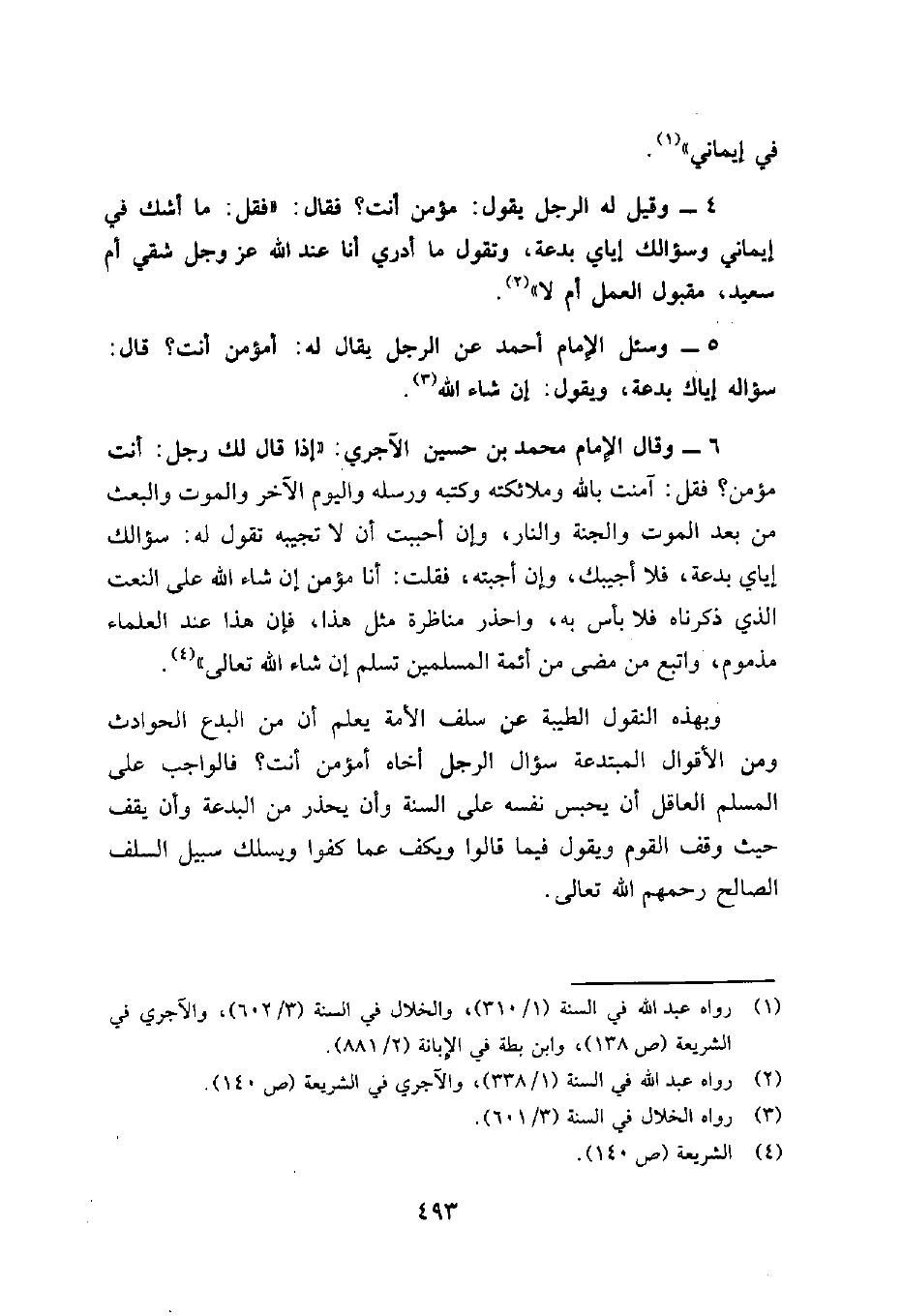 1 رواه عبد الله في السنة (1/310) ، والخلال في السنة (3/ 602) ، والاجري في الشريعة (ص 138) ، وابن بطة في الإبانة (3/881) .