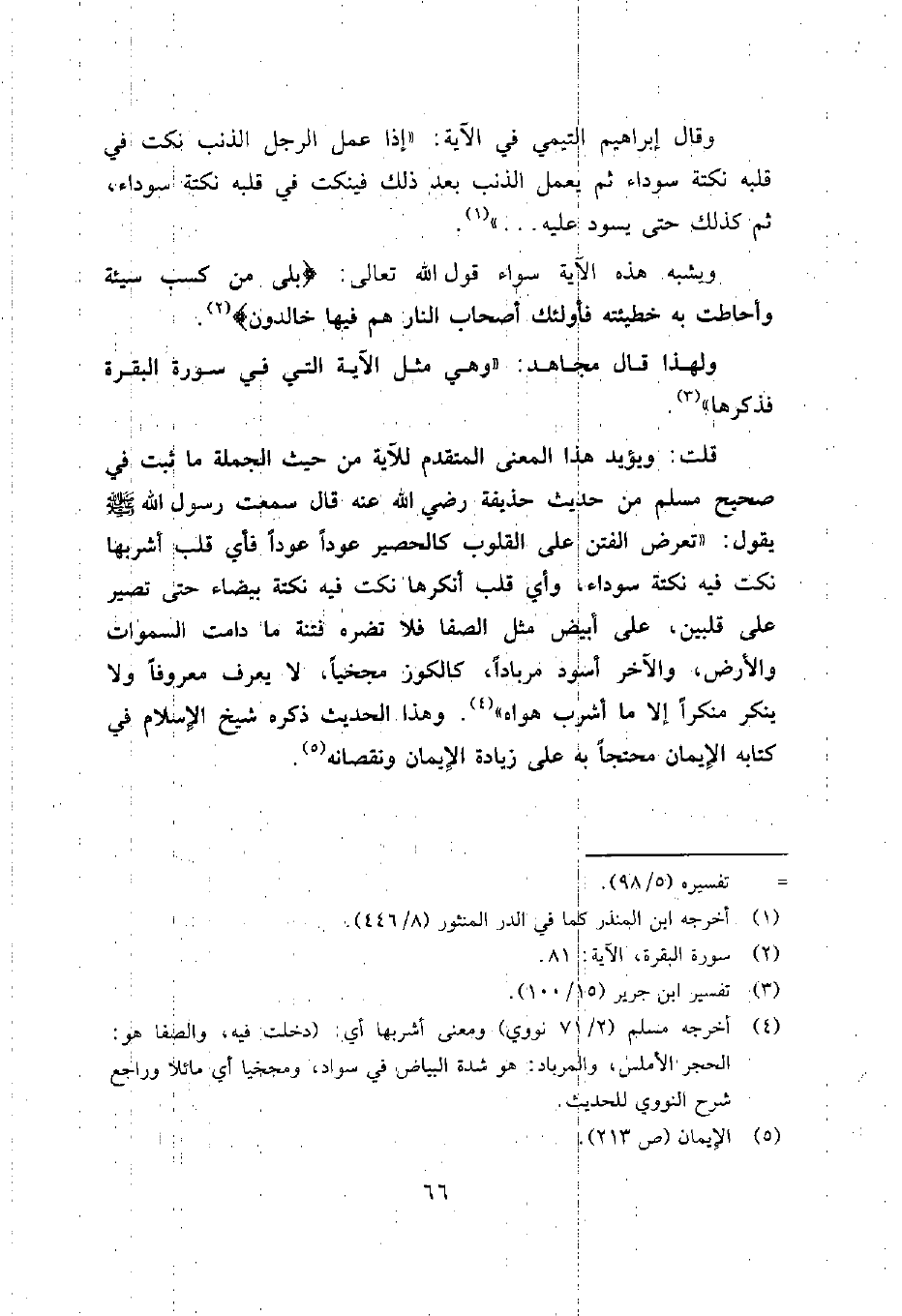 وقال إبراهيم التيمي في الآية:"إذا عمل الرجل الذنب نكت في قلبه نكتة سوداء ثم يعمل الذنب بعد ذلك فينكت في قلبه نكتة سوداء، ثم كذلك حتى يسود عليه.."1.