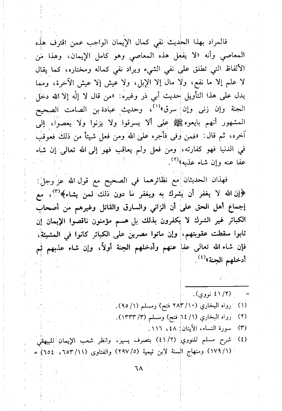 4 شرح مسلم للنووي (2/41) بتصرف يسير، وانظر شعب الإيمان للبيهقي (1/179) ومنهاج السنة لابن تيمية (5/297) والفتاوى (11/653، 654) ، ومجموعة الرسائل والمسائل (3/ 342) ، والرد على الأخنائي (ص 316) .