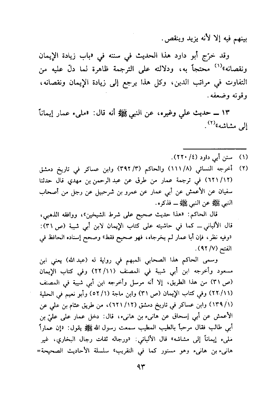 13- حديث علي وغيره، عن النبي صلى الله عليه وسلم أنه قال:"ملىء عمار إيماناً إلى مشاشه" 2.