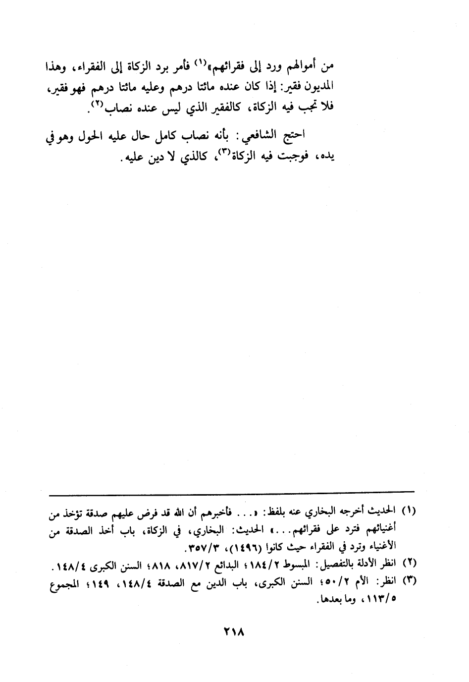 (¬3) انظر: الأم 2/ 50؛ السنن الكبرى، باب الدين مع الصدقة 4/ 148، 149؛ المجموع 5/ 113، وما بعدها.