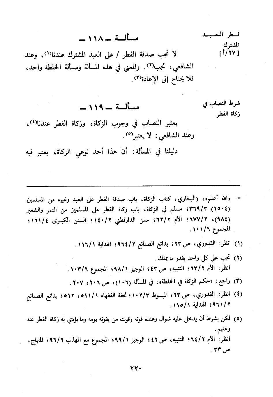 (¬4) انظر: القدوري، ص 23؛ المبسوط 2/ 103؛ تحفة الفقهاء 1/ 511، 512؛ بدائع الصنائع 2/ 961؛ الهداية 1/ 115.