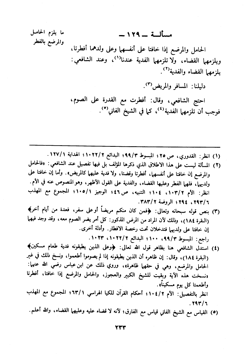 مسألة: 129 - ما يلزم الحامل والمرضع بالفطر