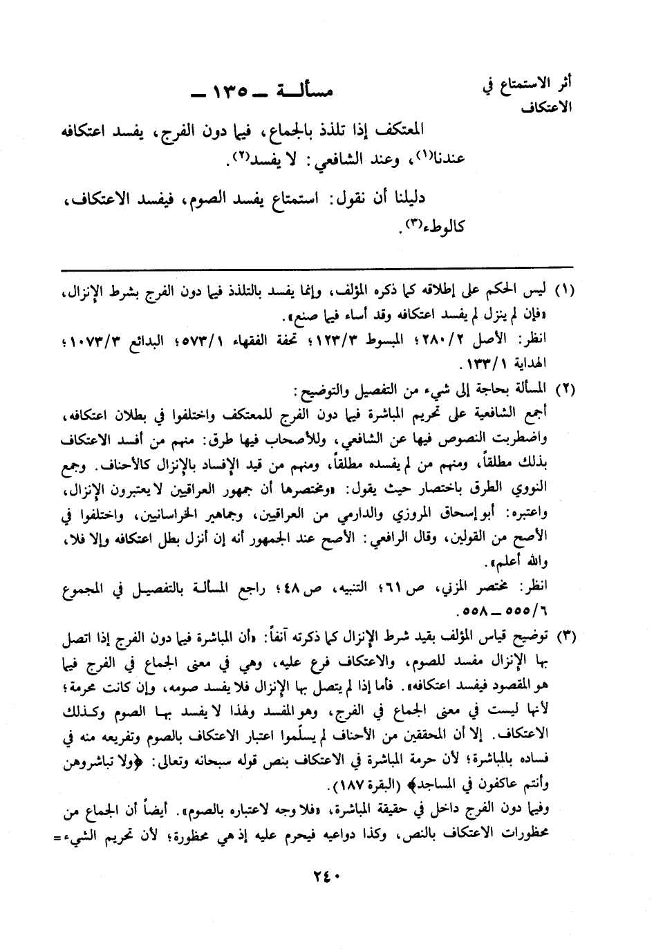 مسألة: 135 - أثر الاستمتاع في الاعتكاف