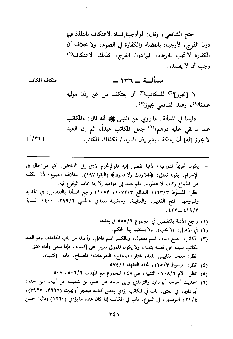 (¬4) انظر: المبسوط 3/ 125؛ تحفة الفقهاء 1/ 574.