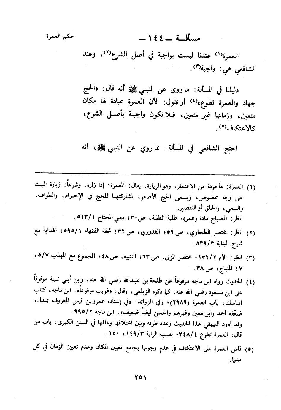 مسألة: 144 - حكم العمرة
